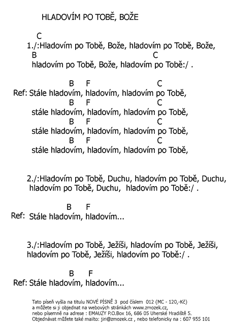 POŠTOVNÉ NEÚČTUJEME | HLADOVÍM PO TOBĚ, BOŽE píseň z alba Nové písně 3 - Jméno Ježíš uctívám zpívá Jiří Zmožek a sbor | (MP3 ukázka >, Text se značkami >, Objednat >) |