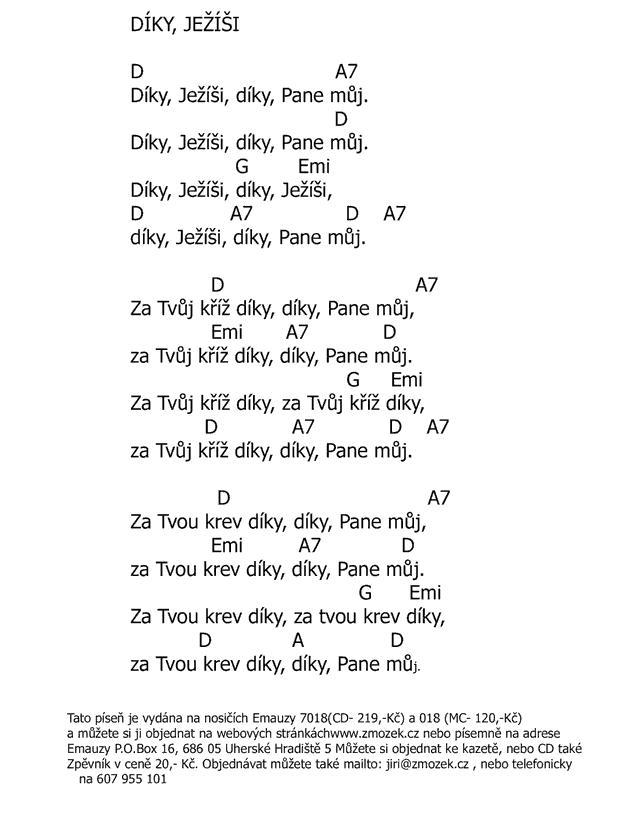 POŠTOVNÉ NEÚČTUJEME | DÍKY, JEŽÍŠI píseň z alba Chvála a uctívání 1 zpívá Jiří Zmožek a sbor | (MP3 ukázka >, Text se značkami >, Objednat >) |