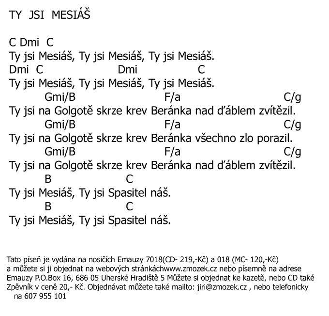 POŠTOVNÉ NEÚČTUJEME | TY JSI MESIÁŠ píseň z alba Chvála a uctívání 1 zpívá Jiří Zmožek a sbor | (MP3 ukázka >, Text se značkami >, Objednat >) |
