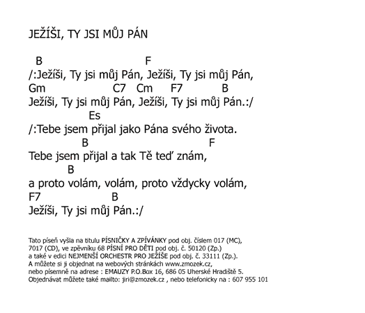 POŠTOVNÉ NEÚČTUJEME | JEŽÍŠI, TY JSI MŮJ PÁN vyšlo na albu Písničky a zpívánky zpívá Marcela Zmožková | (MP3 ukázka >, Text se značkami >, Objednat >) |